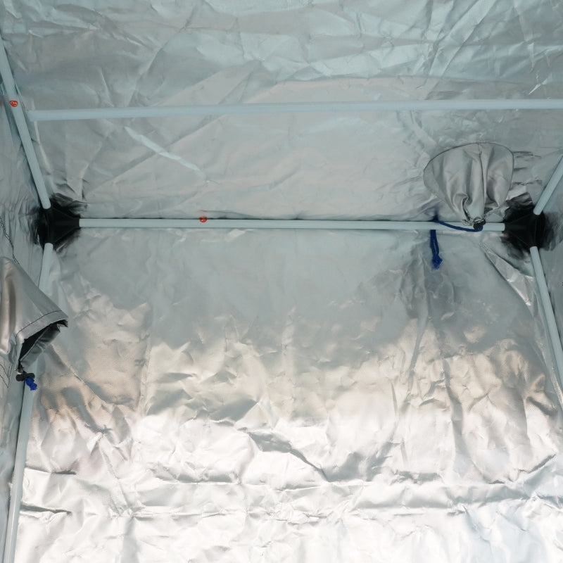 La structure est facile à assembler et repose sur un système de tuyaux métalliques de 14 mm recouverts de résine époxy pour une plus grande durabilité, reliés par des angle robustes. La box de culture Pure tent 2.0 dispose également de barres supérieures pour faciliter l'accrochage du système d'extraction ou des réflecteurs.