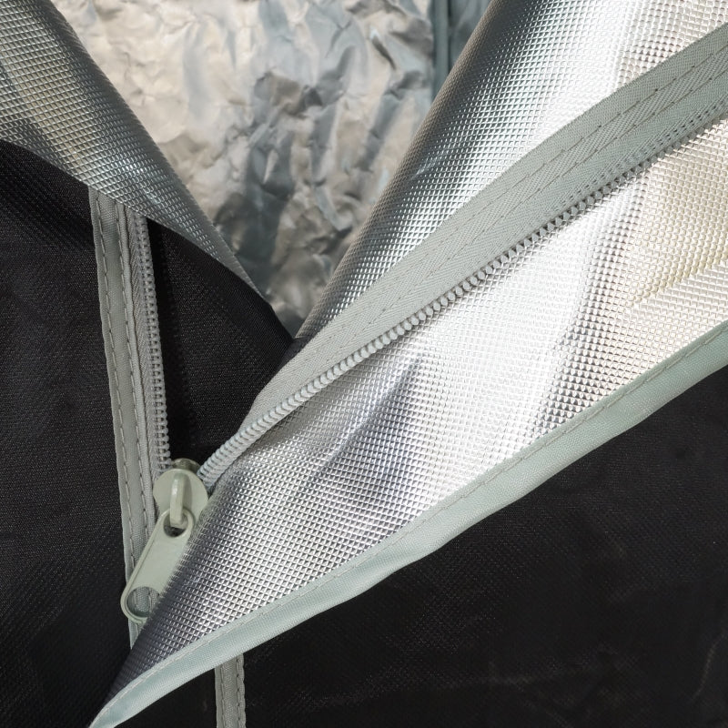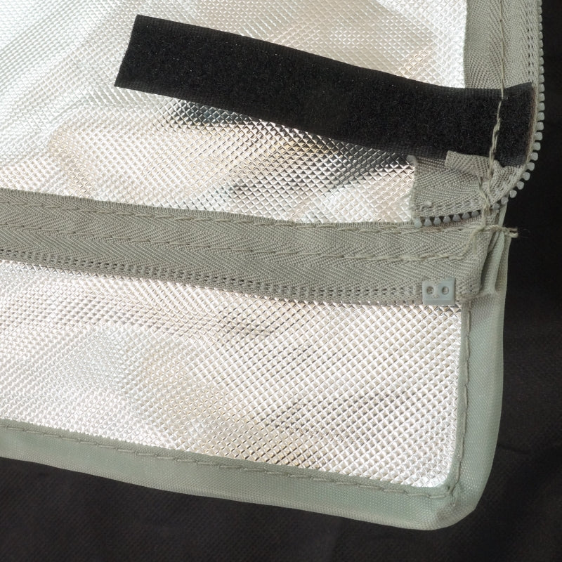 L'intérieur est fabriqué avec une toile recouverte de matériau réfléchissant Mylar 400D à l'aspect rhomboïdal, offrant une optimisation de la réflectivité de votre éclairage. L'extérieur est fini en noir anthracite.