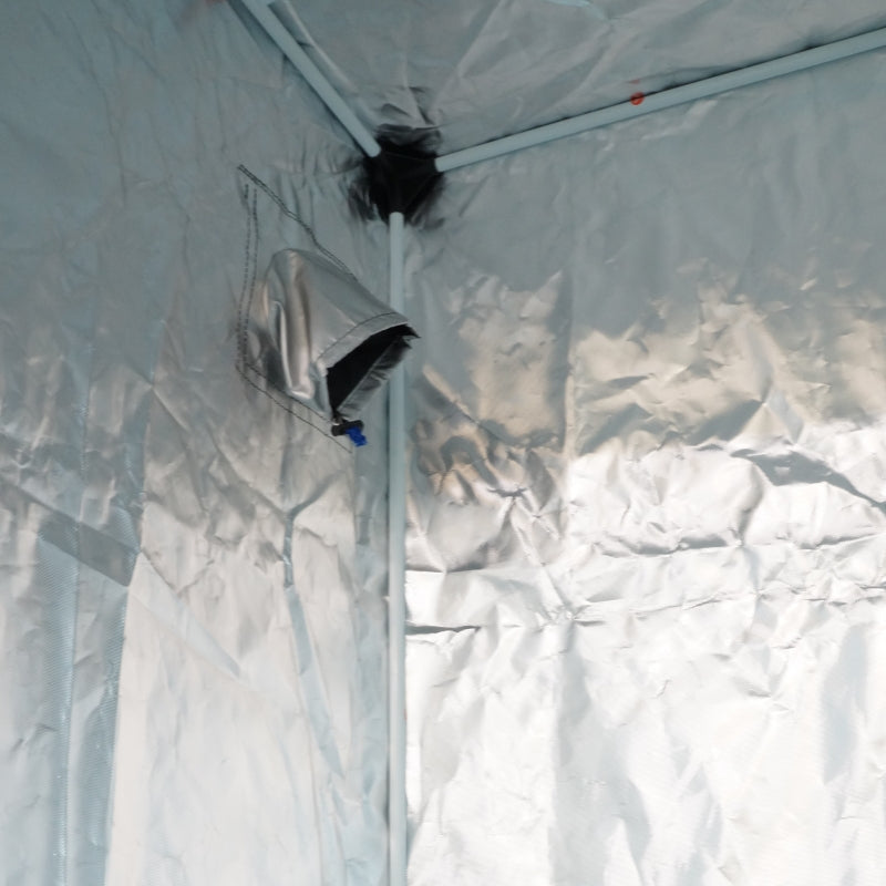 La nouvelle chambre de culture Pure Tent version 2.0 dispose de plusieurs entrées et sorties pour le placement des conduits de ventilation pour vos extracteurs et in-tracteurs, ainsi qu'une poche intérieure pratique pour ranger les outils d'utilisation courante tels que les instruments de mesure.