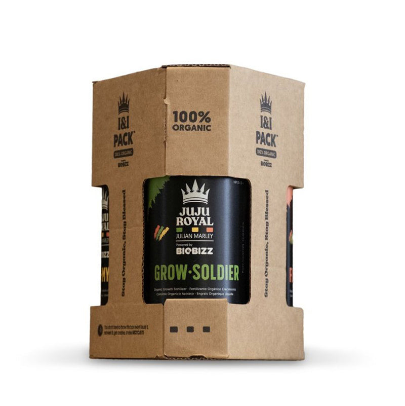 Fruit de la collaboration exclusive entre Biobizz et Julian Marley, le JuJu Royal Try Pack incarne une philosophie de culture holistique où performance rime avec respect de la nature. Chaque formule a été pensée pour nourrir vos plantes tout en enrichissant votre sol.